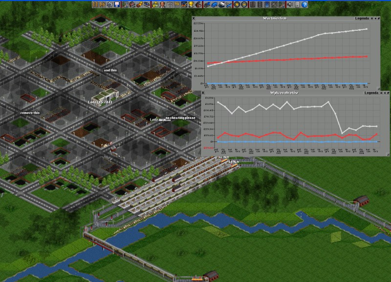 RE: Dyskusja o zmianach w regulaminie - McZapkie - 30-07-2014 Zablokowanie budowy przez CTRL niestety tylko trochę utrudnia życie oszustom - pokusa łatwego zarobku jest zbyt duża, o to przykład: [Obrazek: cheating-spread.jpg] gracz nastawiał w miastach przystanki zwiększające obszar zbierania towaru - musiał w tym celu stawiać dużo przystanków i potem te pośrednie kasować. Mimo iż zburzyłem te w głębi miasta i go napomniałem, zrobił to ponownie - chyba zbyt delikatna sugestia, ban&kick lepiej zadziała. Na wykresach widać różnicę przed i po usunięciu kilku przystanków w głębi miasta (te bliżej stacji mu zostawiłem). Zresztą przy cargodist takie działanie trochę nie ma sensu, transport miejski nagania klientów na stację a równocześnie zarabia na lokalnych połączeniach. Zmniejszanie rozmiaru stacji nie jest fajnym rozwiązaniem - ogranicza możliwości budowy kombinowanych stacji np. prostopadłych do siebie, albo stacji i dużych lotnisk. Proponuję prosty przepis - sumaryczna odległość między wszystkimi nieciągłymi częściami stacji nie może być większa niż np. 6 pól. 6 pól to akurat w sam raz, aby zrobić perony wyspowe na zewnątrz magistrali, albo po drugiej stronie rzeki, lub przy ruchu jednokierunkowym na sąsiednich ulicach w siatce 3x3. RE: Dyskusja o zmianach w regulaminie - TadeuszD - 30-07-2014 (30-07-2014, 14:09)McZapkie napisał(a): ...gracz nastawiał w miastach przystanki zwiększające obszar zbierania towaru - musiał w tym celu stawiać dużo przystanków... Patrz na moje pytanie i odpowiedź Mousika. Jeśli tabliczka stoi na terenie stacji, na której zachodzi faktyczny załadunek, to nic w tym zdrożnego. Gdy jednak tabliczka jest tak, jak widać na Twoim screenie - wtedy zachodzi podejrzenie o kasyno. Ale tu też bez przesady - jeśli te pociągi jadą dalej przez pół planszy, to te kilka kratek, o które wydłużono trasę nie graja już wielkiej roli. Akurat dostawianie "ślepych" kratek stacji bliżej środka miasta uważam za uzasadnione posunięcie, gdyż typowa stacja, niezależnie od swej wielkości, ma zasięg zaledwie 4 kratki, więc ogarnia zaledwie 3 rzędy budynków i drogę... A wracając do głównego tematu, to może zwyczajnie zdefiniować "kasyno" jako przewóz towarów/pasażerów na fizyczną odległość wyraźnie mniejszą niż wynika to z rozmieszczenia tabliczek stacji. Bo chyba o to w tym wszystkim chodzi. RE: Dyskusja o zmianach w regulaminie - McZapkie - 30-07-2014 (30-07-2014, 19:19)TadeuszD napisał(a): Akurat dostawianie "ślepych" kratek stacji bliżej środka miasta uważam za uzasadnione posunięcie, gdyż typowa stacja, niezależnie od swej wielkości, ma zasięg zaledwie 4 kratki, więc ogarnia zaledwie 3 rzędy budynków i drogę...Od tego są tramwaje i autobusy, aby pasażerów pozbierać, a nie sztucznie zwiększać zakres ładowania. (30-07-2014, 19:19)TadeuszD napisał(a): A wracając do głównego tematu, to może zwyczajnie zdefiniować "kasyno" jako przewóz towarów/pasażerów na fizyczną odległość wyraźnie mniejszą niż wynika to z rozmieszczenia tabliczek stacji. Bo chyba o to w tym wszystkim chodzi.W definicji kasyna chodziło o coś zupełnie innego - było to oszukiwanie systemu ratingu - ocena stacji była liczona tylko gdy coś było w zasięgu stacji - ocena stacji w "szczerym polu" nie zależała od ilości towaru. Stąd te zakazy transferowania poza zasięg przemysłu. Obecnie ten bug jest poprawiony, spada rating wszystkich stacji i tak jak pisałem, całą definicję można sobie darować, a skupić się na oszukiwaniu z rozmieszczeniem tabliczek. RE: Dyskusja o zmianach w regulaminie - TadeuszD - 30-07-2014 (30-07-2014, 20:29)McZapkie napisał(a): Od tego są tramwaje i autobusy, aby pasażerów pozbierać, a nie sztucznie zwiększać zakres ładowania. Przy ilości mieszkańców >1000 ma to sens, a nawet parę innych zalet jak np. szybszy rozwój miast sztucznie napędzany wysokim ratingiem na przystankach. Ale w przypadku mieścin 400 dusz ludzie mogą chodzić na stację piechotą.