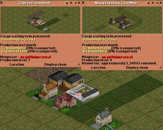 po drugie nowy "przemysł" o nazwie wioska - takie małe coś generujące pasażerów oraz produkujące niewielkie ilości żywności. Może być przydatne jako starter do zwiększenia produkcji sąsiedniego przemysłu lub zabezpieczenia obozu drwali, a żywność do zabezpieczenia wzrostu miasta w zimie. Oczywiście przetwórnia zywności produkuje znacznie więcej jesli odpowiednio jest zaopatrzona, ale do czasu podciągnięcia tego zaopatrzenia można się ratować szynką od chłopa