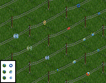Zrobiłem też próbki nowych grafik dla nośników. Najciekawiej i w sumie przypadkiem wyszły mi "kule energii". Mogłyby zmieniać swoje rozmiary w zależności o transportowanego ładunku, kolor zależałby od rodzaju nośnika. Gdyby jeszcze zrobić im animację, aby się mieniły... Drugim ciekawym rozwiązaniem jest mini firefox