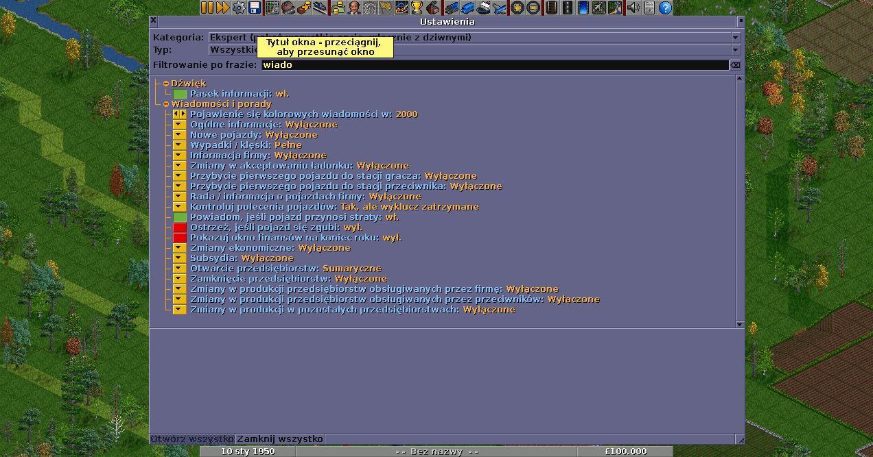 Zmień na górze na ekspert, wpisz "wiadom" i masz pełną listę co wyskakuje.